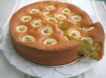 生地を流し込み、輪切りにしたバナナを上にのせます。
